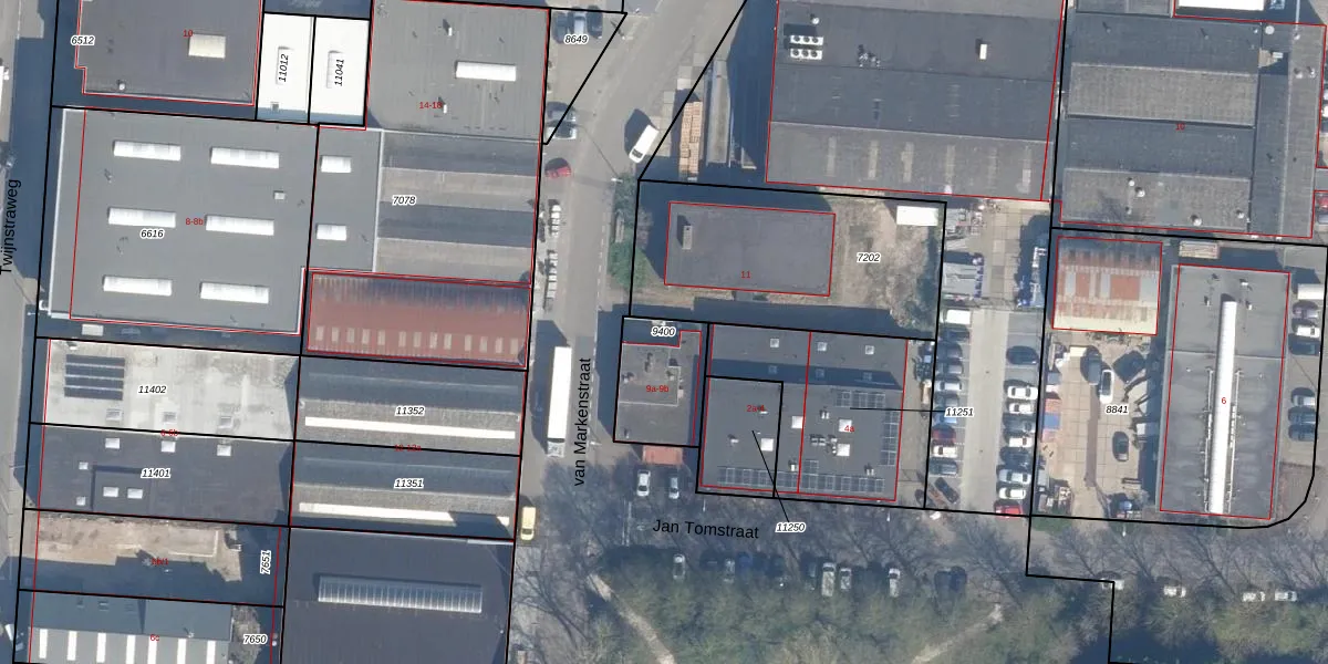 Gebruik de zoekbalk of klik op een perceel om informatie over het perceel te bekijken.