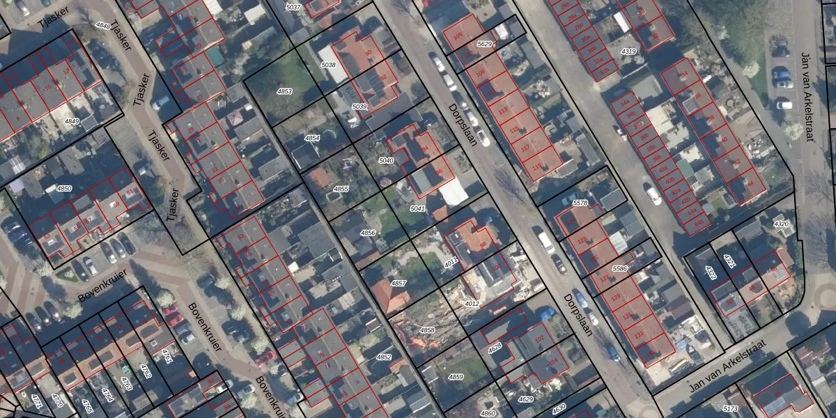 Gebruik de zoekbalk of klik op een perceel om informatie over het perceel te bekijken.