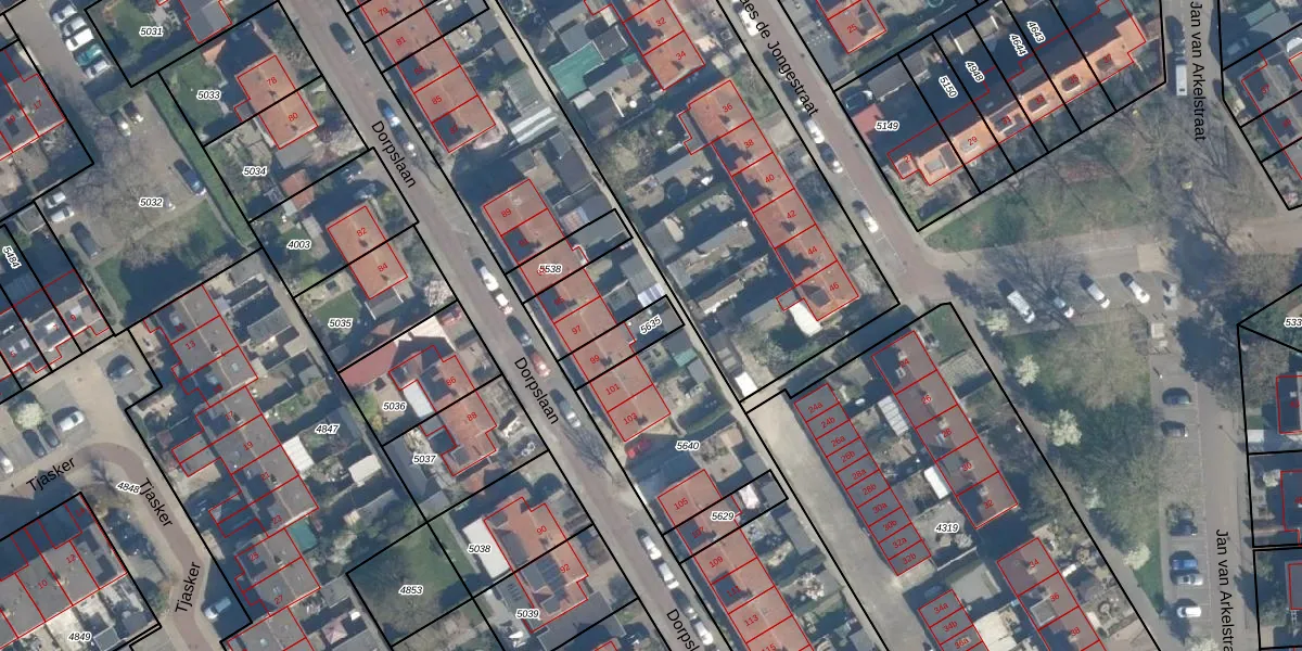 Gebruik de zoekbalk of klik op een perceel om informatie over het perceel te bekijken.