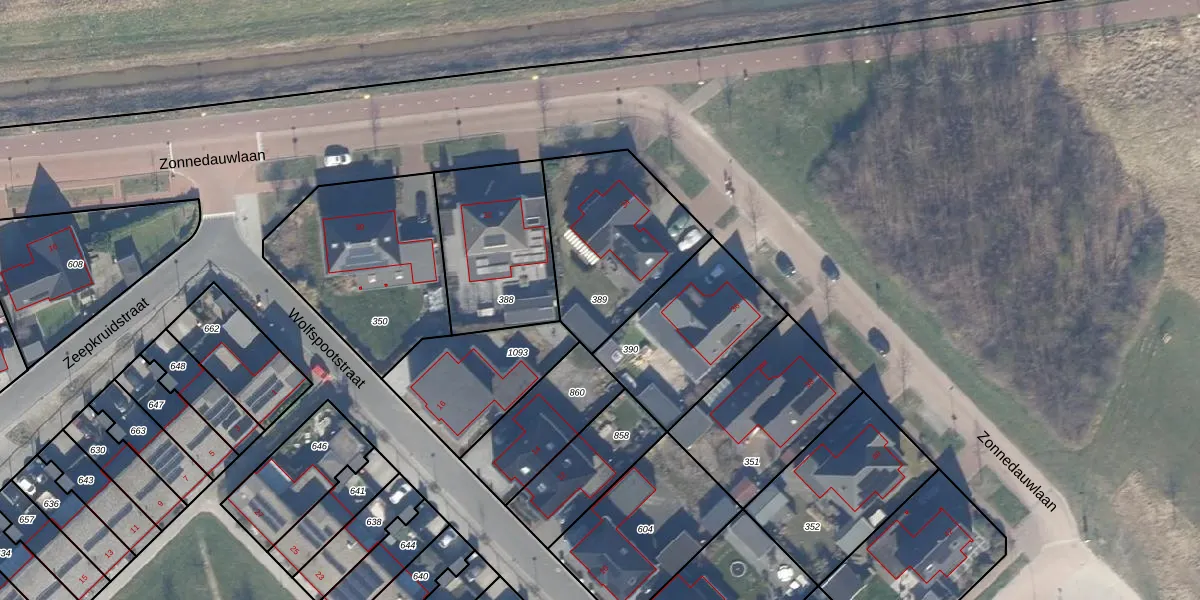 Gebruik de zoekbalk of klik op een perceel om informatie over het perceel te bekijken.