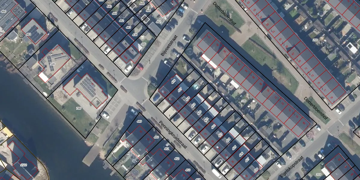 Gebruik de zoekbalk of klik op een perceel om informatie over het perceel te bekijken.