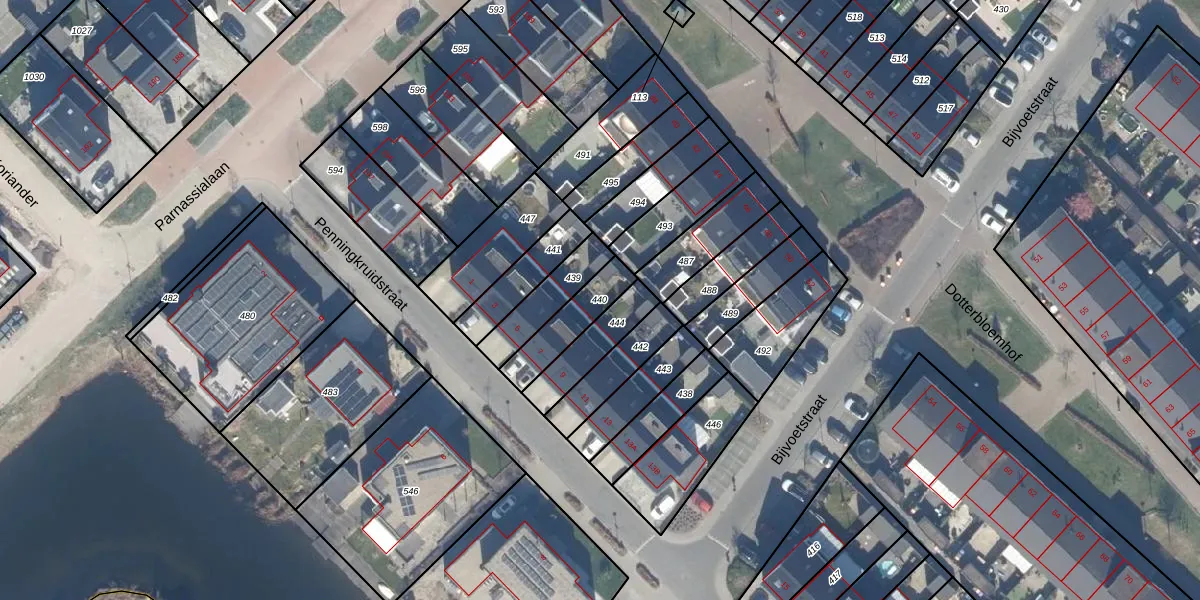 Gebruik de zoekbalk of klik op een perceel om informatie over het perceel te bekijken.