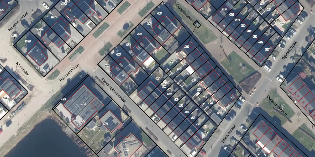 Gebruik de zoekbalk of klik op een perceel om informatie over het perceel te bekijken.