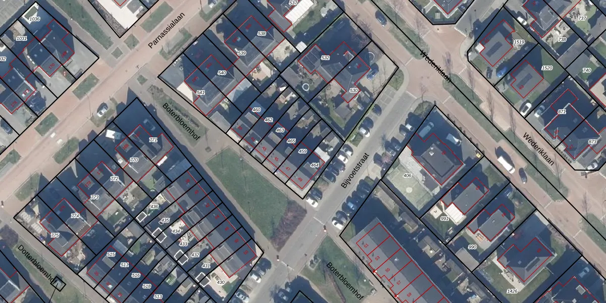 Gebruik de zoekbalk of klik op een perceel om informatie over het perceel te bekijken.