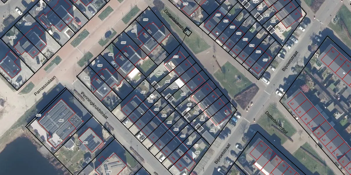 Gebruik de zoekbalk of klik op een perceel om informatie over het perceel te bekijken.