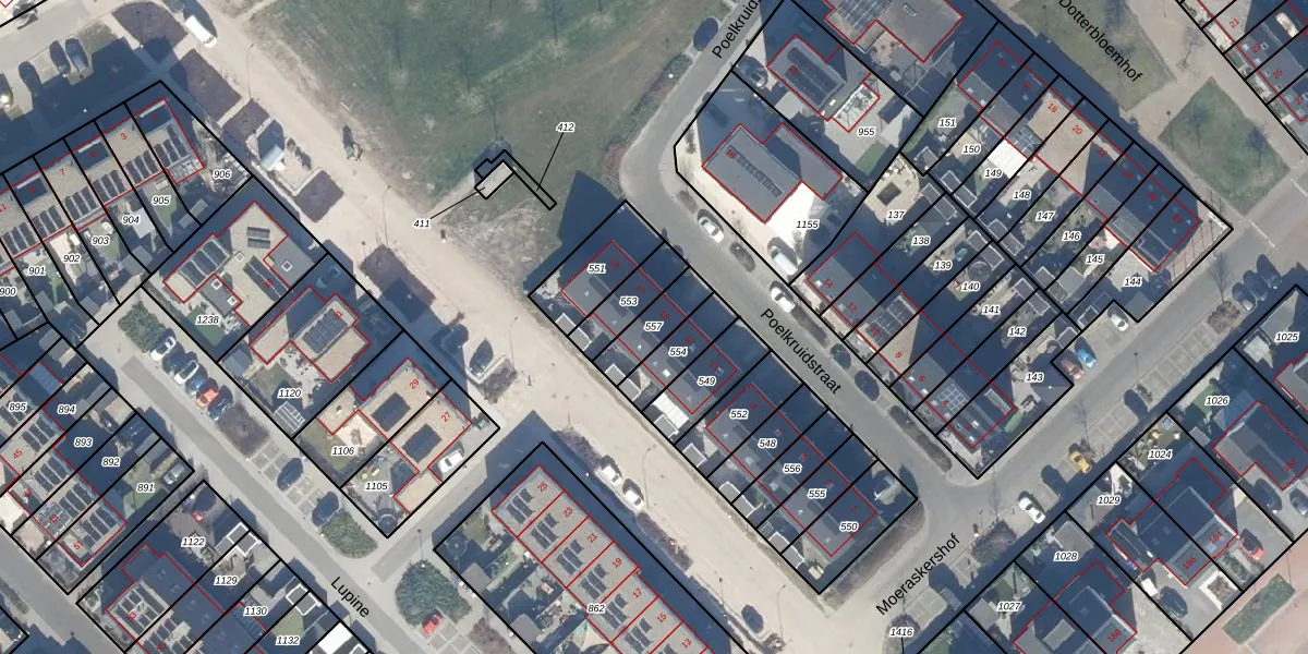 Gebruik de zoekbalk of klik op een perceel om informatie over het perceel te bekijken.