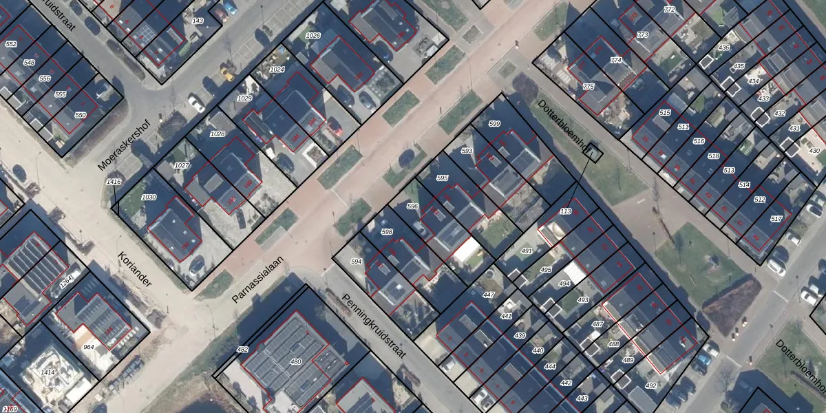 Gebruik de zoekbalk of klik op een perceel om informatie over het perceel te bekijken.