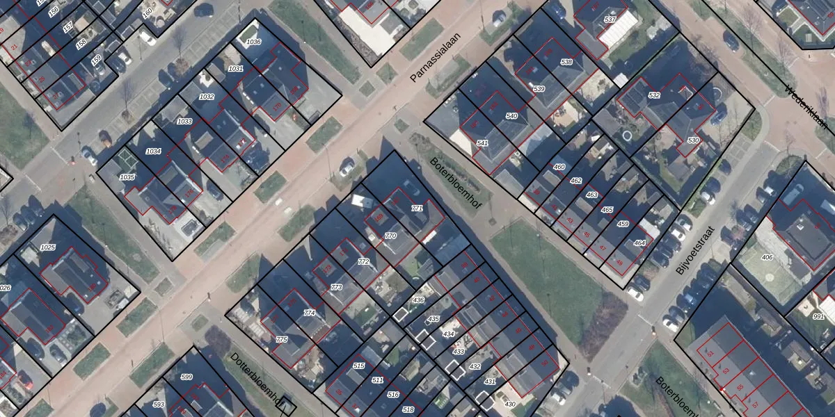 Gebruik de zoekbalk of klik op een perceel om informatie over het perceel te bekijken.
