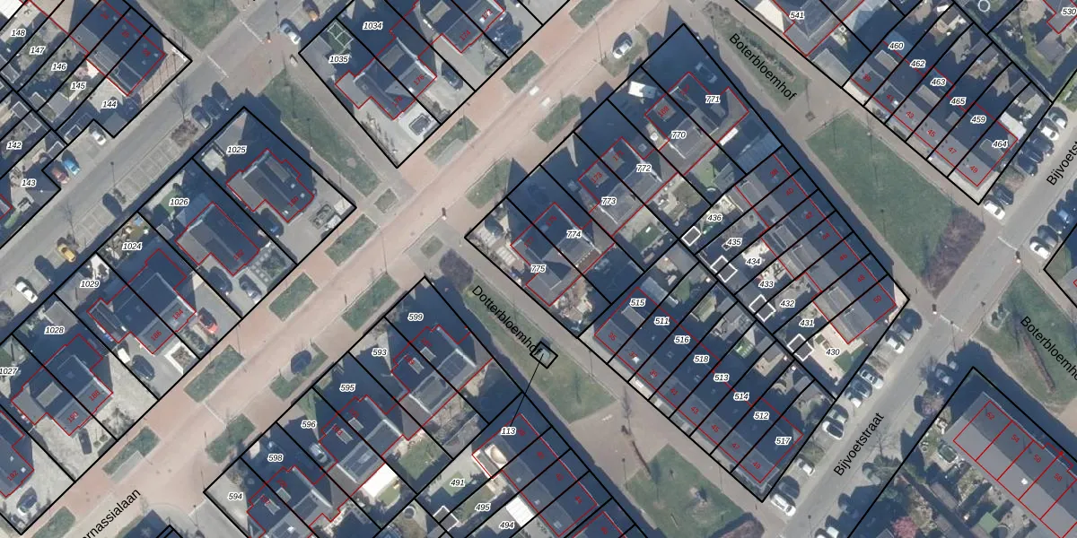 Gebruik de zoekbalk of klik op een perceel om informatie over het perceel te bekijken.