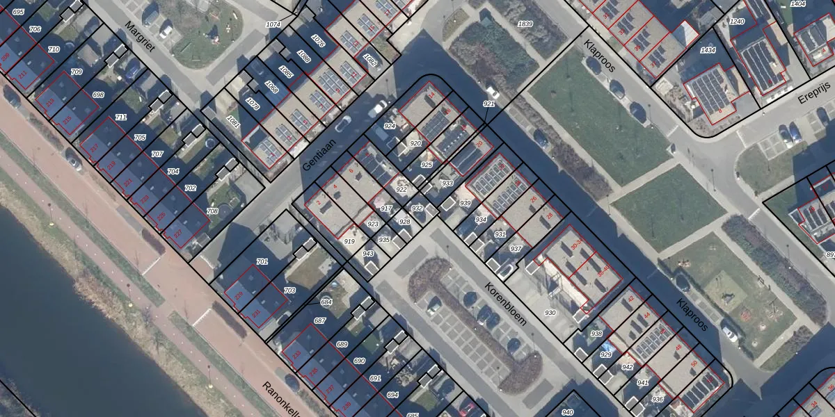 Gebruik de zoekbalk of klik op een perceel om informatie over het perceel te bekijken.