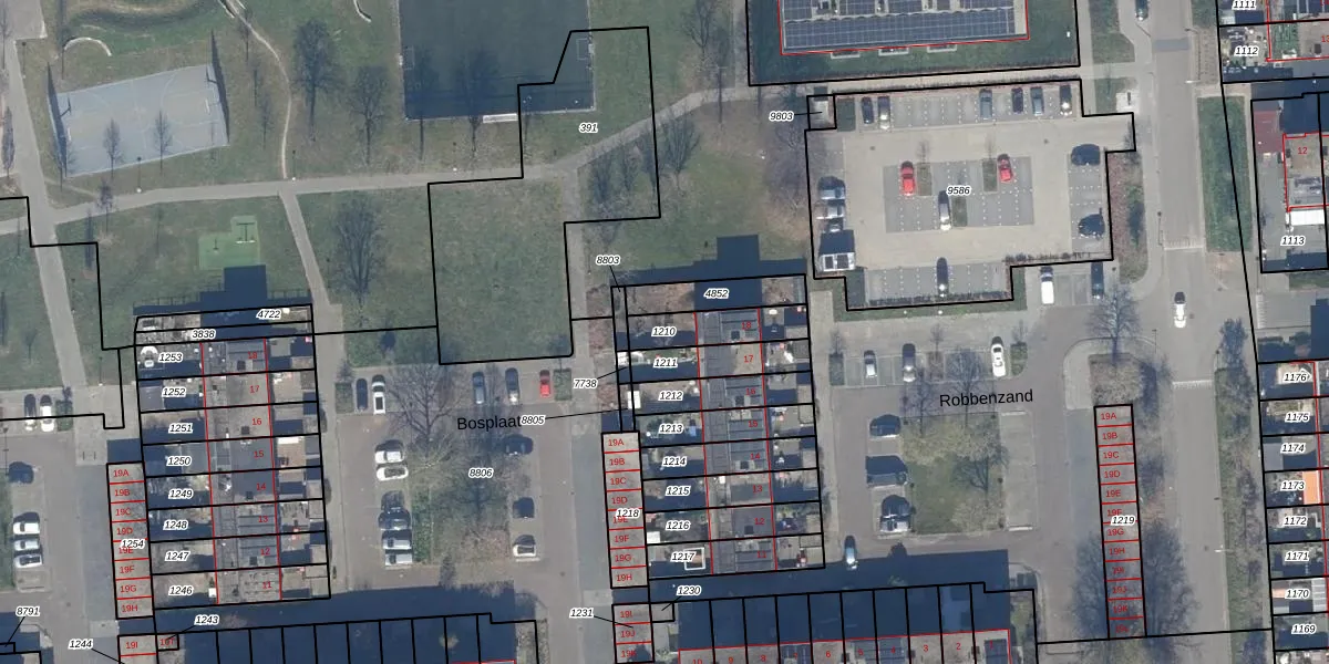 Gebruik de zoekbalk of klik op een perceel om informatie over het perceel te bekijken.