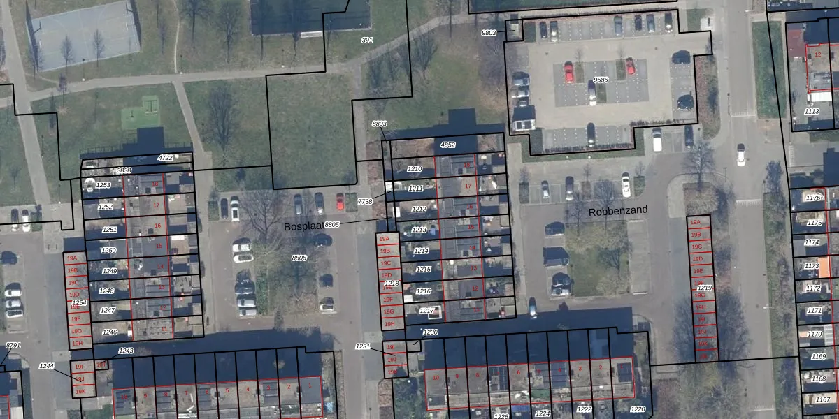 Gebruik de zoekbalk of klik op een perceel om informatie over het perceel te bekijken.