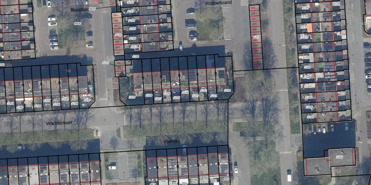 Gebruik de zoekbalk of klik op een perceel om informatie over het perceel te bekijken.