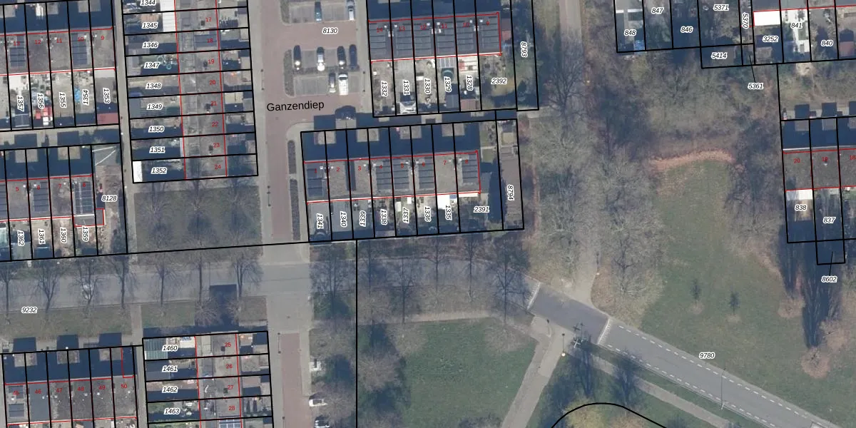 Gebruik de zoekbalk of klik op een perceel om informatie over het perceel te bekijken.