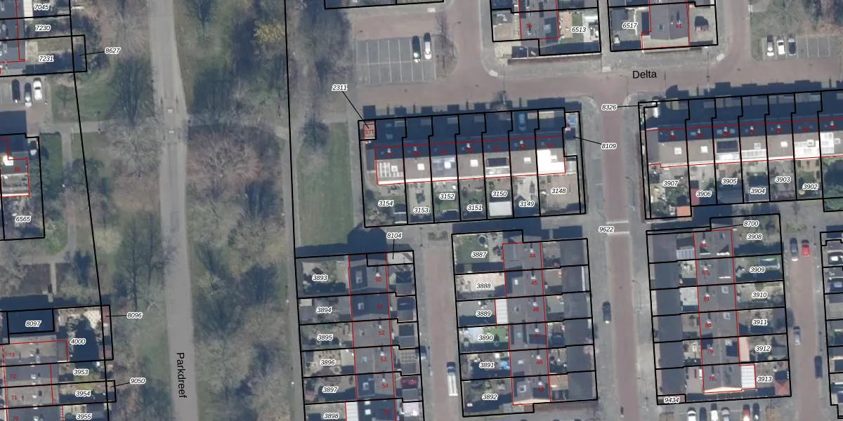 Gebruik de zoekbalk of klik op een perceel om informatie over het perceel te bekijken.