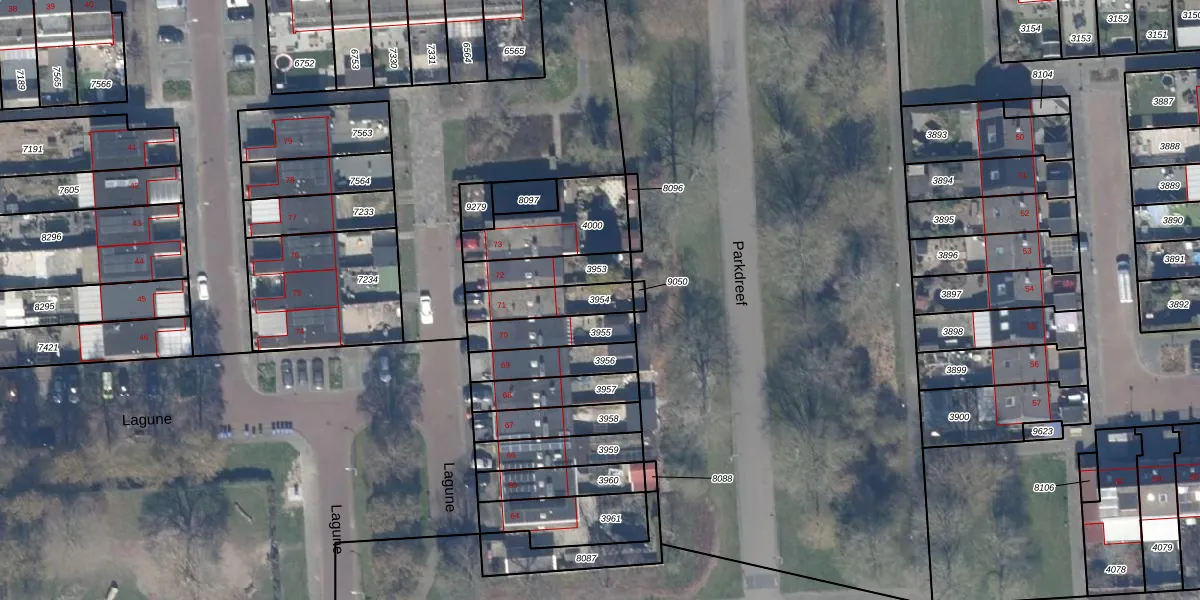 Gebruik de zoekbalk of klik op een perceel om informatie over het perceel te bekijken.
