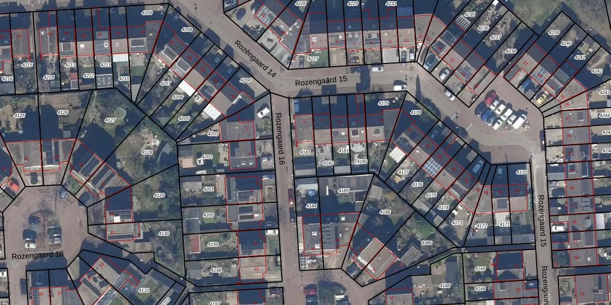 Gebruik de zoekbalk of klik op een perceel om informatie over het perceel te bekijken.