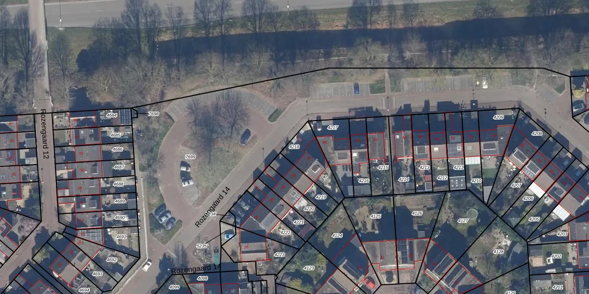 Gebruik de zoekbalk of klik op een perceel om informatie over het perceel te bekijken.