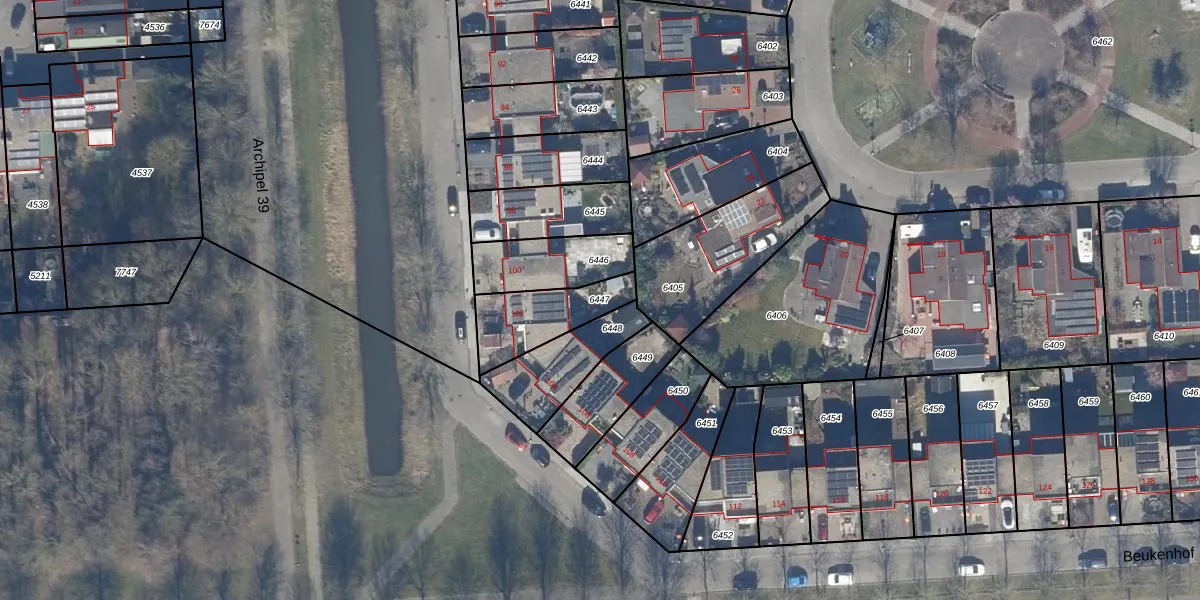 Gebruik de zoekbalk of klik op een perceel om informatie over het perceel te bekijken.