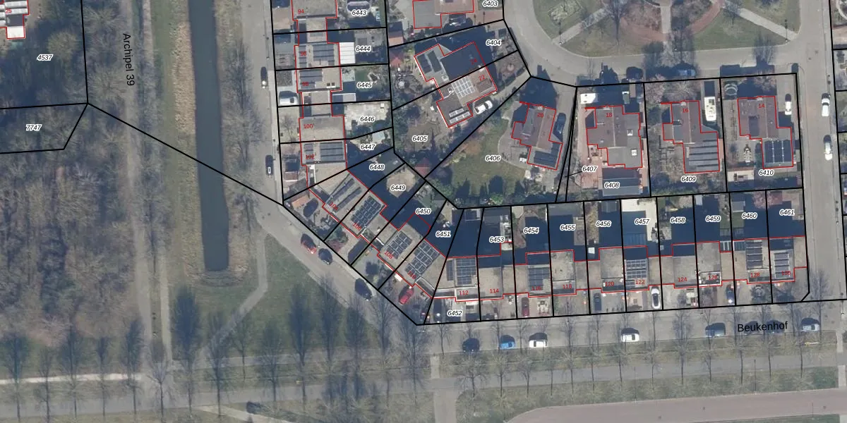 Gebruik de zoekbalk of klik op een perceel om informatie over het perceel te bekijken.
