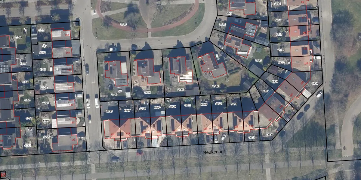 Gebruik de zoekbalk of klik op een perceel om informatie over het perceel te bekijken.