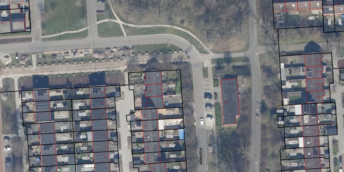 Gebruik de zoekbalk of klik op een perceel om informatie over het perceel te bekijken.