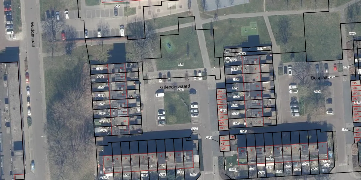 Gebruik de zoekbalk of klik op een perceel om informatie over het perceel te bekijken.