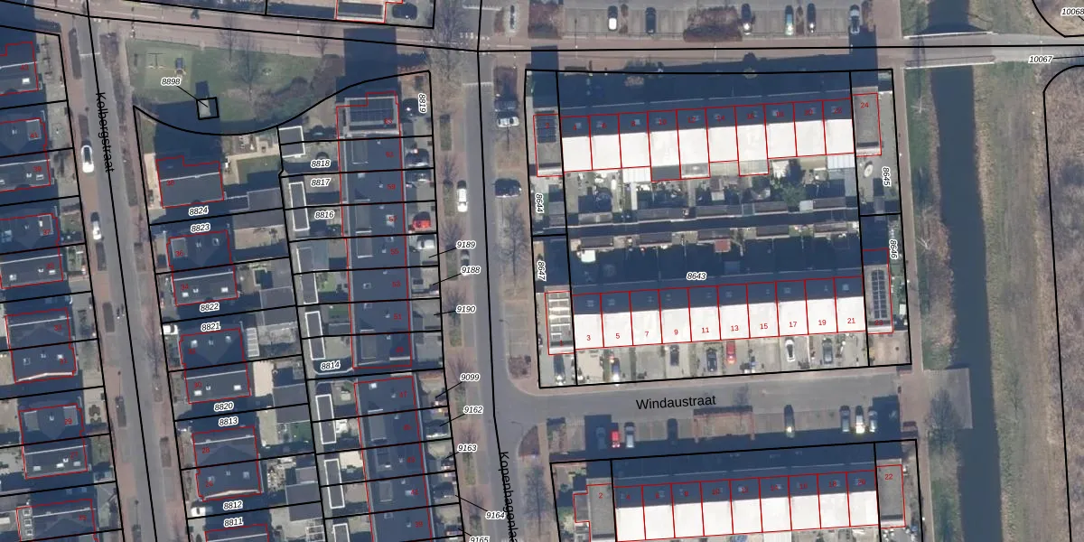 Gebruik de zoekbalk of klik op een perceel om informatie over het perceel te bekijken.