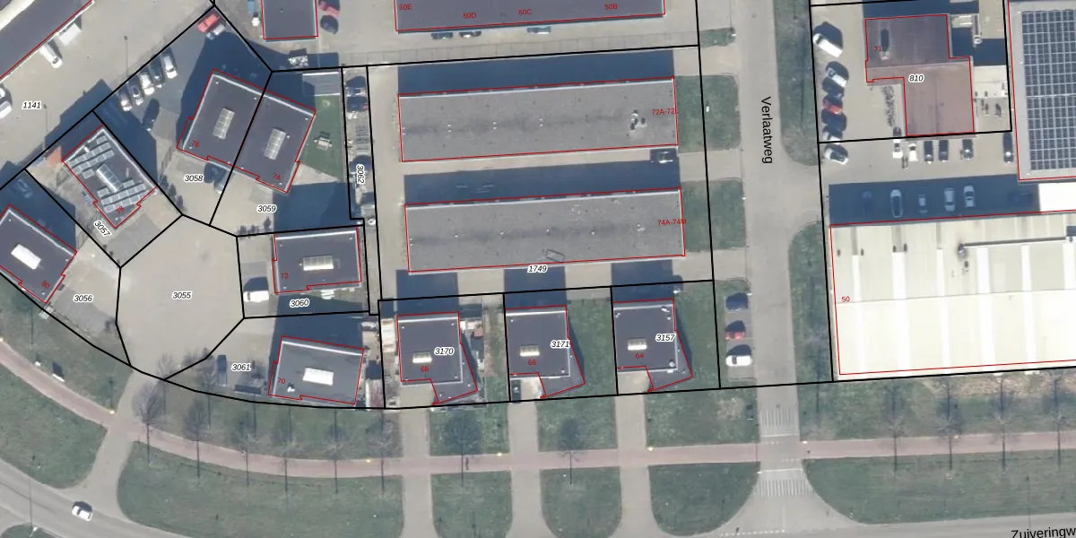 Gebruik de zoekbalk of klik op een perceel om informatie over het perceel te bekijken.
