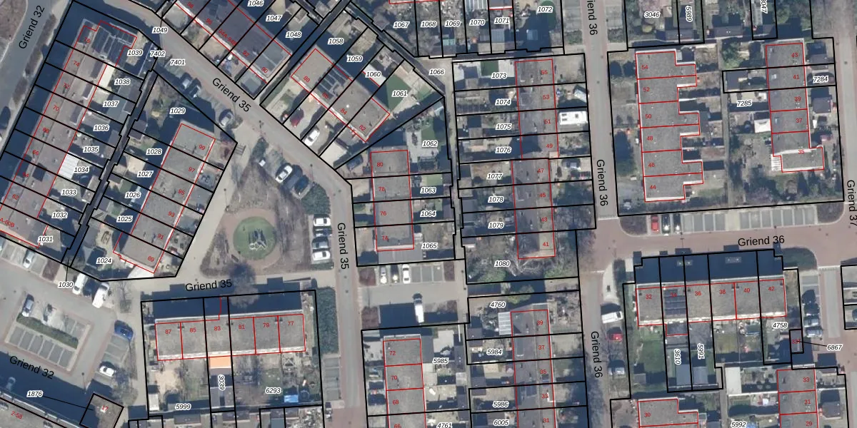 Gebruik de zoekbalk of klik op een perceel om informatie over het perceel te bekijken.