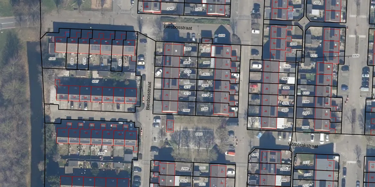 Gebruik de zoekbalk of klik op een perceel om informatie over het perceel te bekijken.
