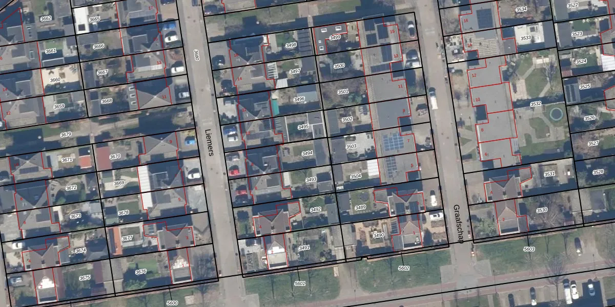 Gebruik de zoekbalk of klik op een perceel om informatie over het perceel te bekijken.