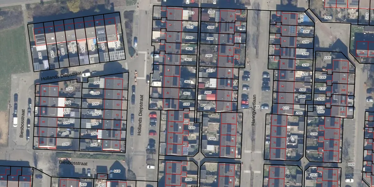 Gebruik de zoekbalk of klik op een perceel om informatie over het perceel te bekijken.
