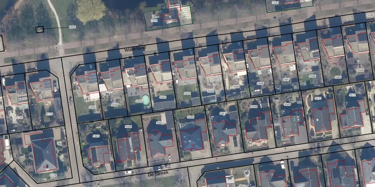 Gebruik de zoekbalk of klik op een perceel om informatie over het perceel te bekijken.