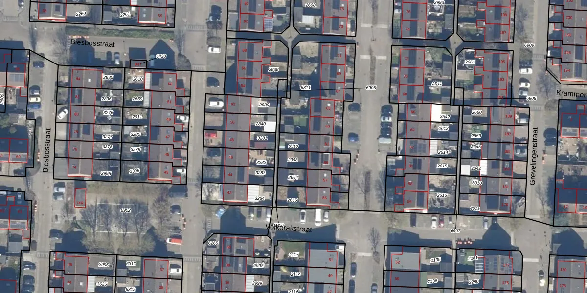 Gebruik de zoekbalk of klik op een perceel om informatie over het perceel te bekijken.