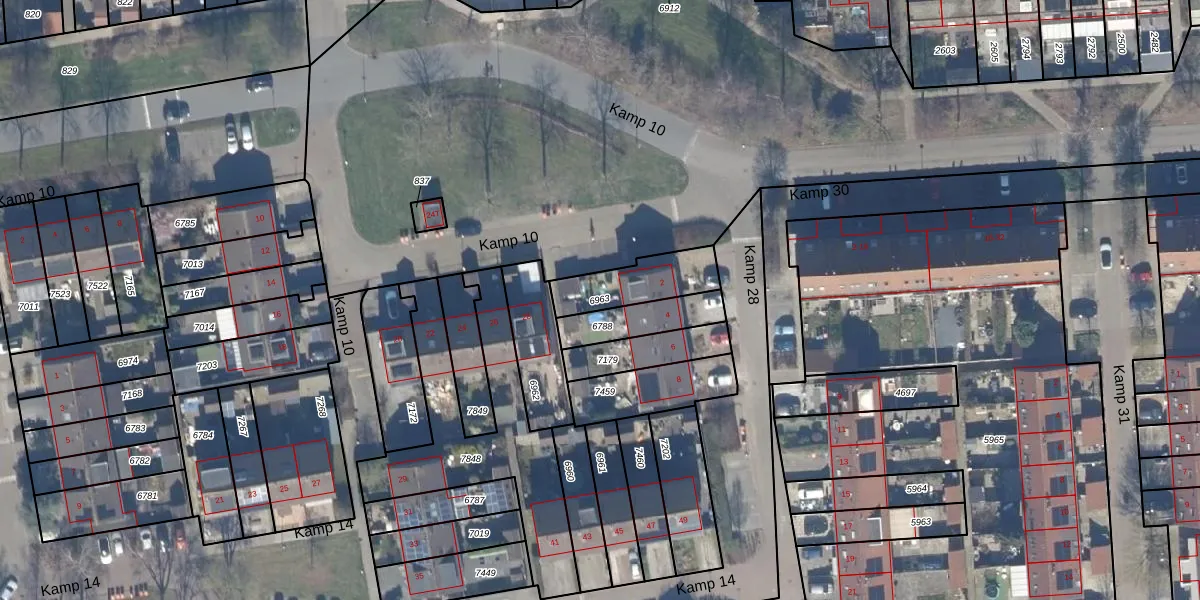 Gebruik de zoekbalk of klik op een perceel om informatie over het perceel te bekijken.
