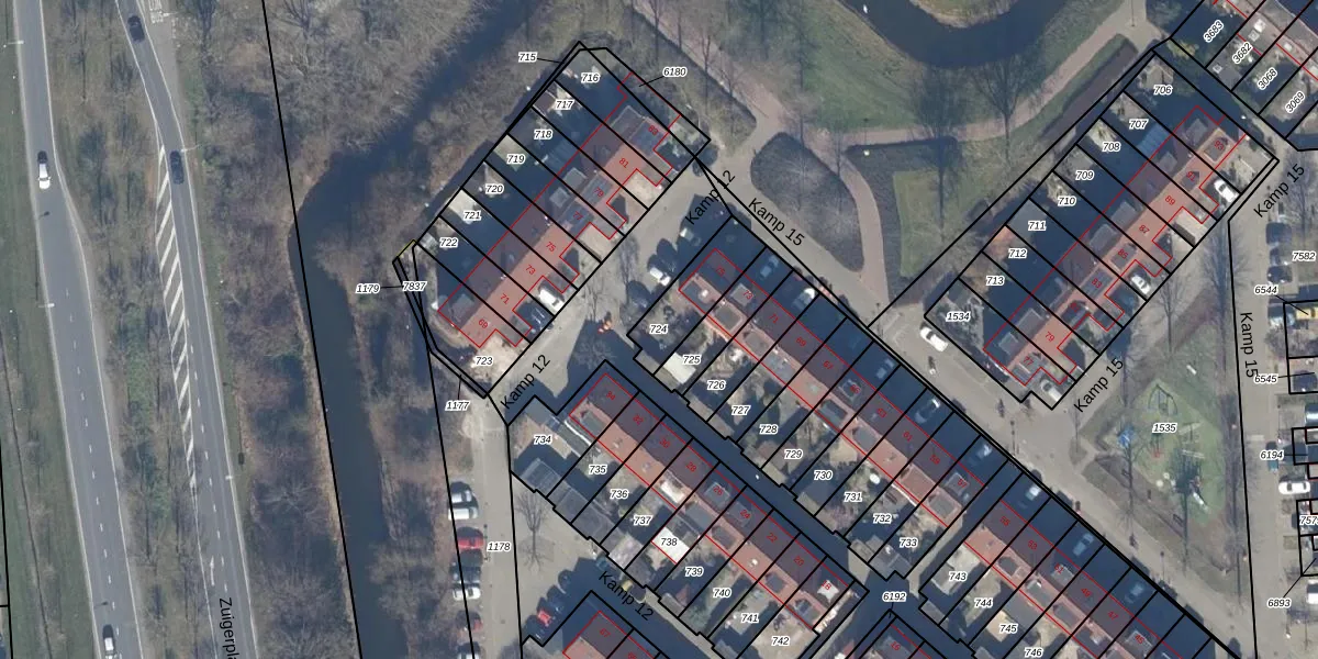 Gebruik de zoekbalk of klik op een perceel om informatie over het perceel te bekijken.