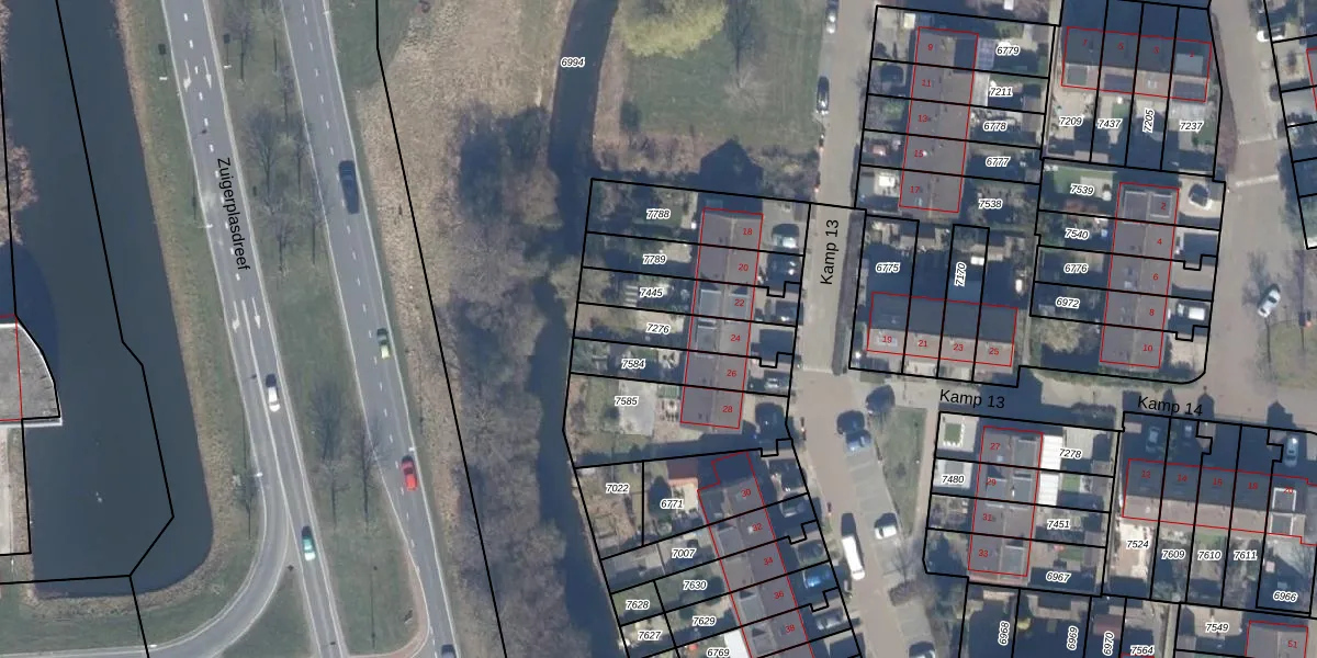 Gebruik de zoekbalk of klik op een perceel om informatie over het perceel te bekijken.