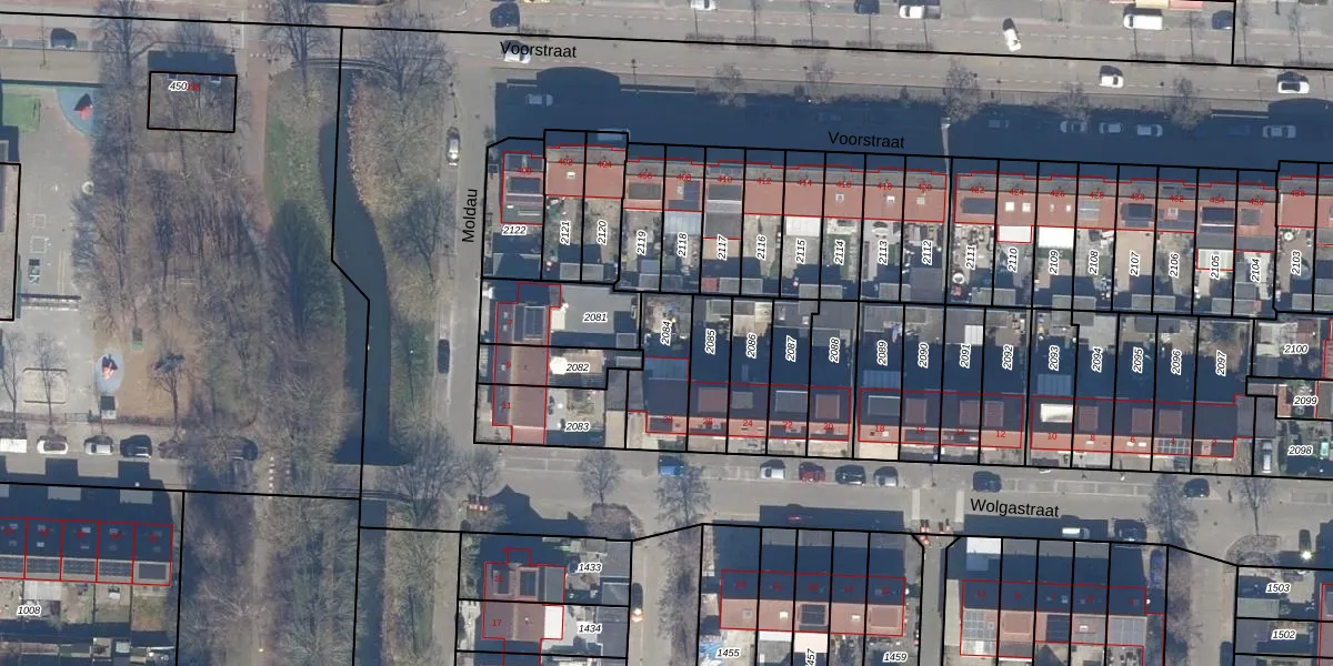 Gebruik de zoekbalk of klik op een perceel om informatie over het perceel te bekijken.