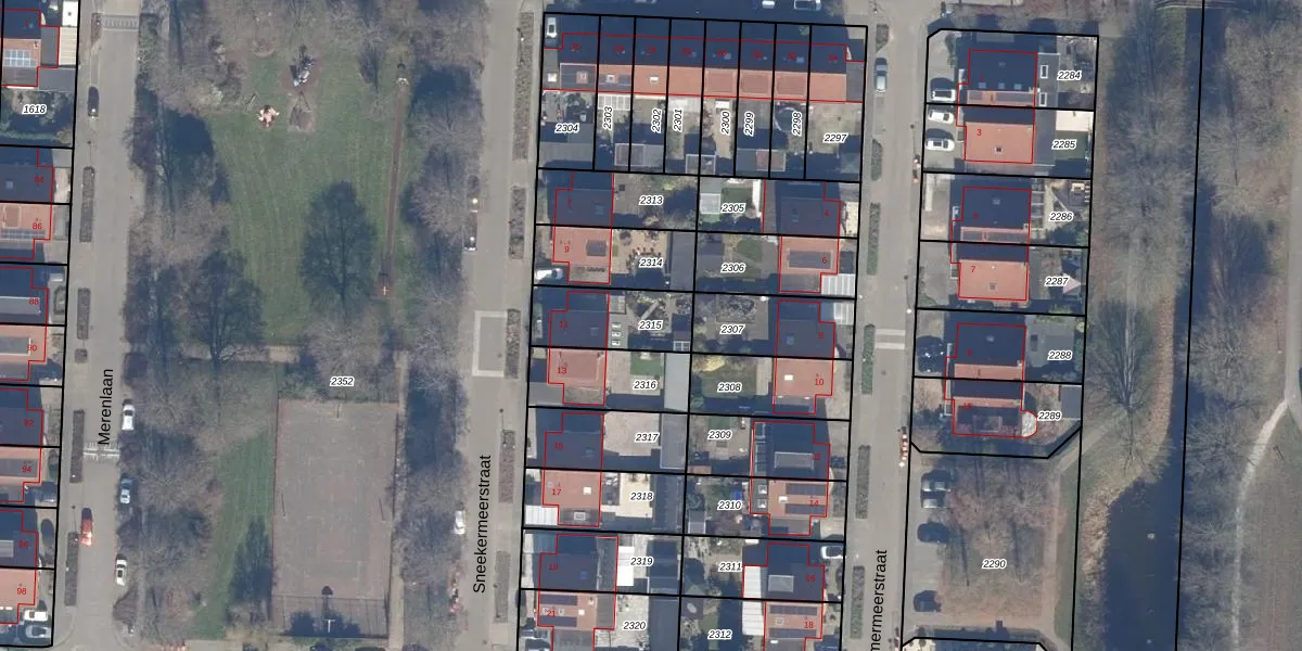 Gebruik de zoekbalk of klik op een perceel om informatie over het perceel te bekijken.