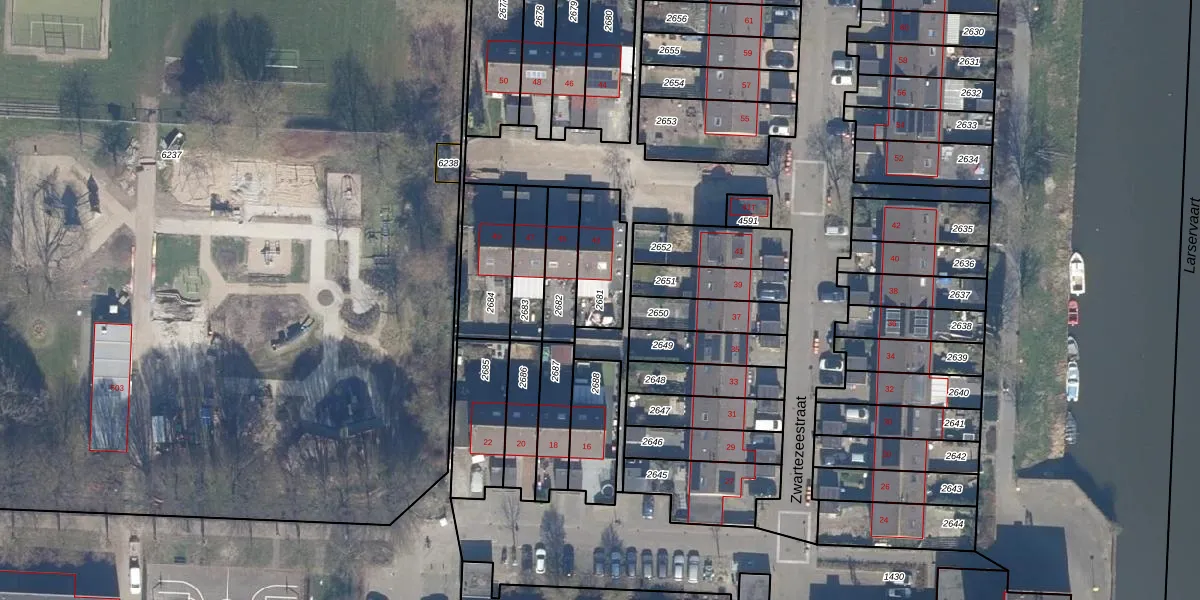 Gebruik de zoekbalk of klik op een perceel om informatie over het perceel te bekijken.