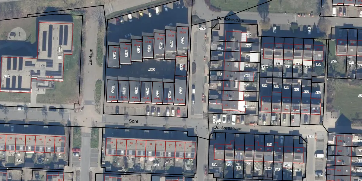 Gebruik de zoekbalk of klik op een perceel om informatie over het perceel te bekijken.