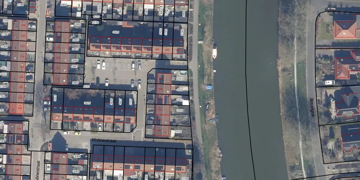 Gebruik de zoekbalk of klik op een perceel om informatie over het perceel te bekijken.