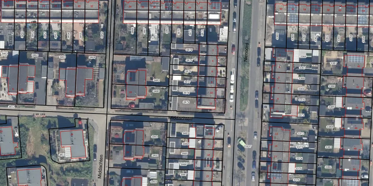 Gebruik de zoekbalk of klik op een perceel om informatie over het perceel te bekijken.