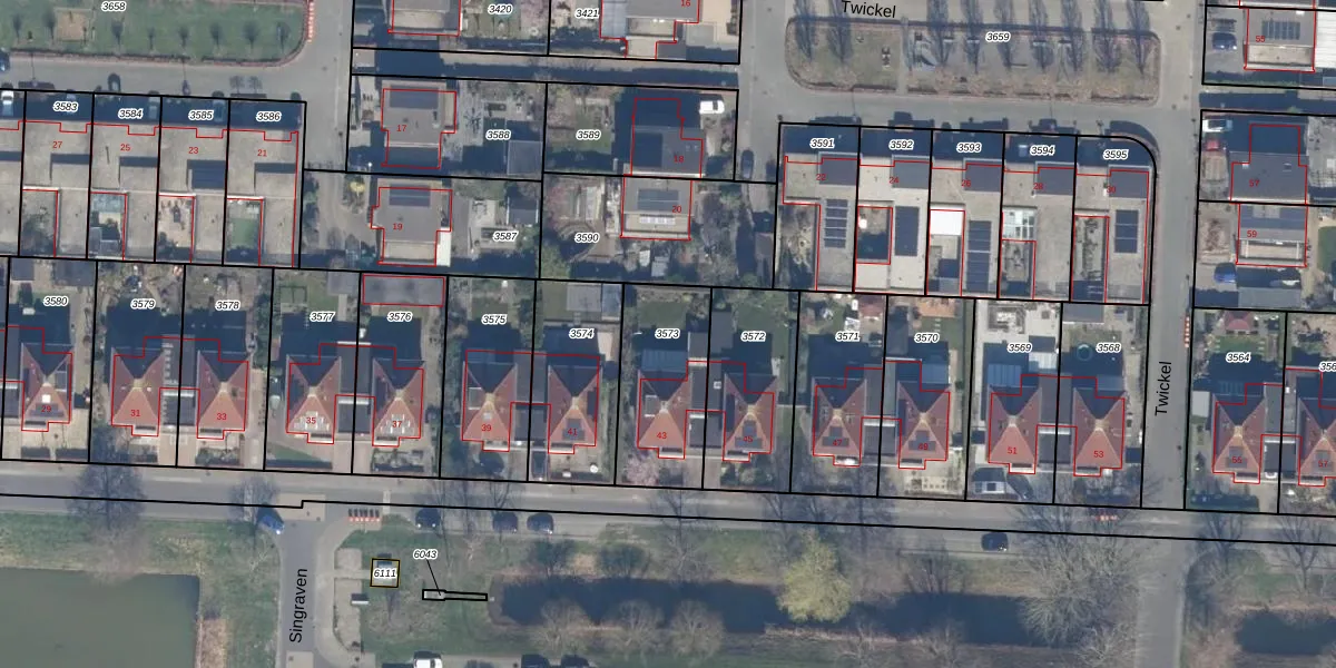 Gebruik de zoekbalk of klik op een perceel om informatie over het perceel te bekijken.
