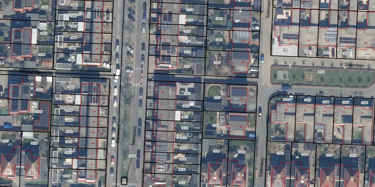 Gebruik de zoekbalk of klik op een perceel om informatie over het perceel te bekijken.