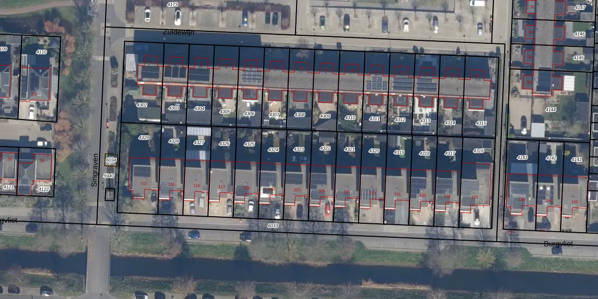 Gebruik de zoekbalk of klik op een perceel om informatie over het perceel te bekijken.