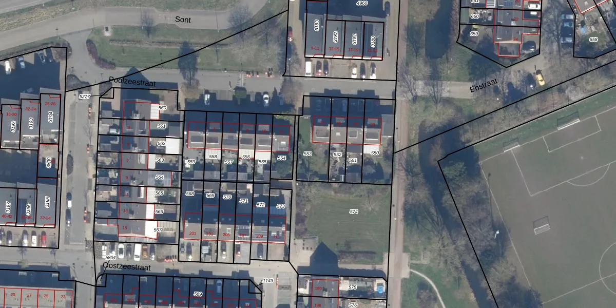 Gebruik de zoekbalk of klik op een perceel om informatie over het perceel te bekijken.