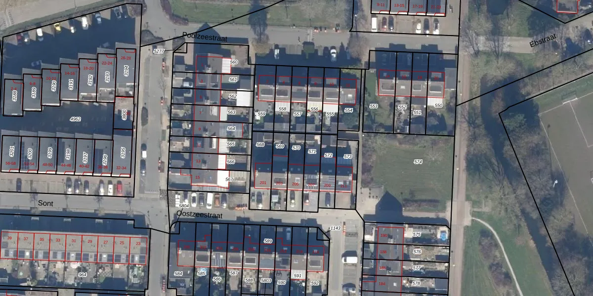 Gebruik de zoekbalk of klik op een perceel om informatie over het perceel te bekijken.