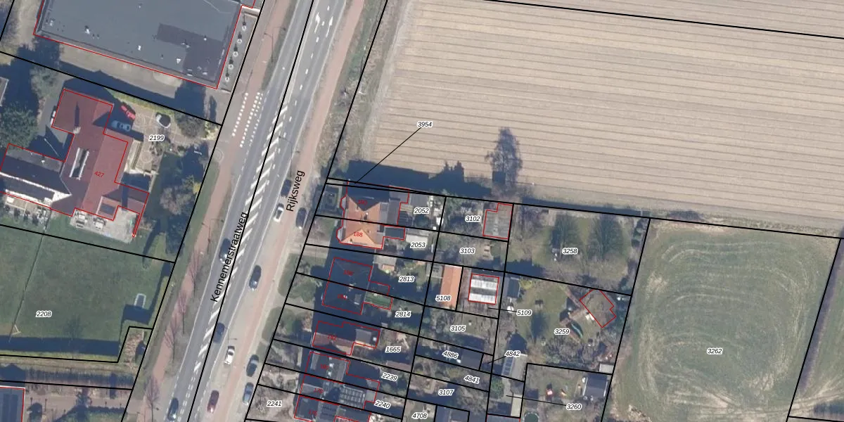 Gebruik de zoekbalk of klik op een perceel om informatie over het perceel te bekijken.